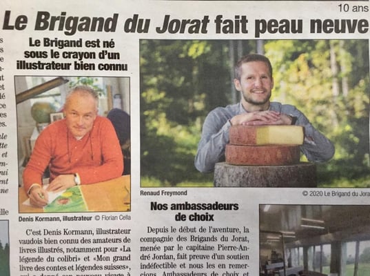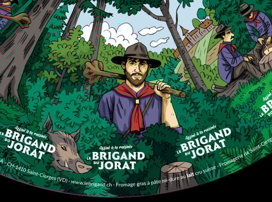 Pour son 10e anniversaire, les producteurs du fromage "Le Brigand du Jorat" m'ont sollicité pour redessiner le personnage qui orne les étiquettes.