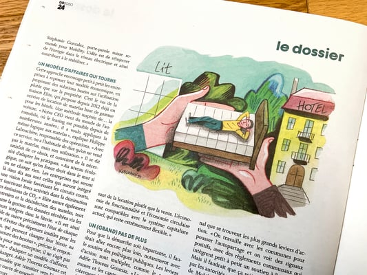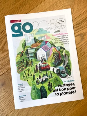 Nouvelle collaboration avec GO2050 - le tabloïd consacré à l'actu des solutions durables encarté dans le Journal de la Côte, Arcinfo et le Nouvelliste. Dans le no4 de novembre 2024, je signe à la fois l'illustration de couverture et celles du dossier principal.